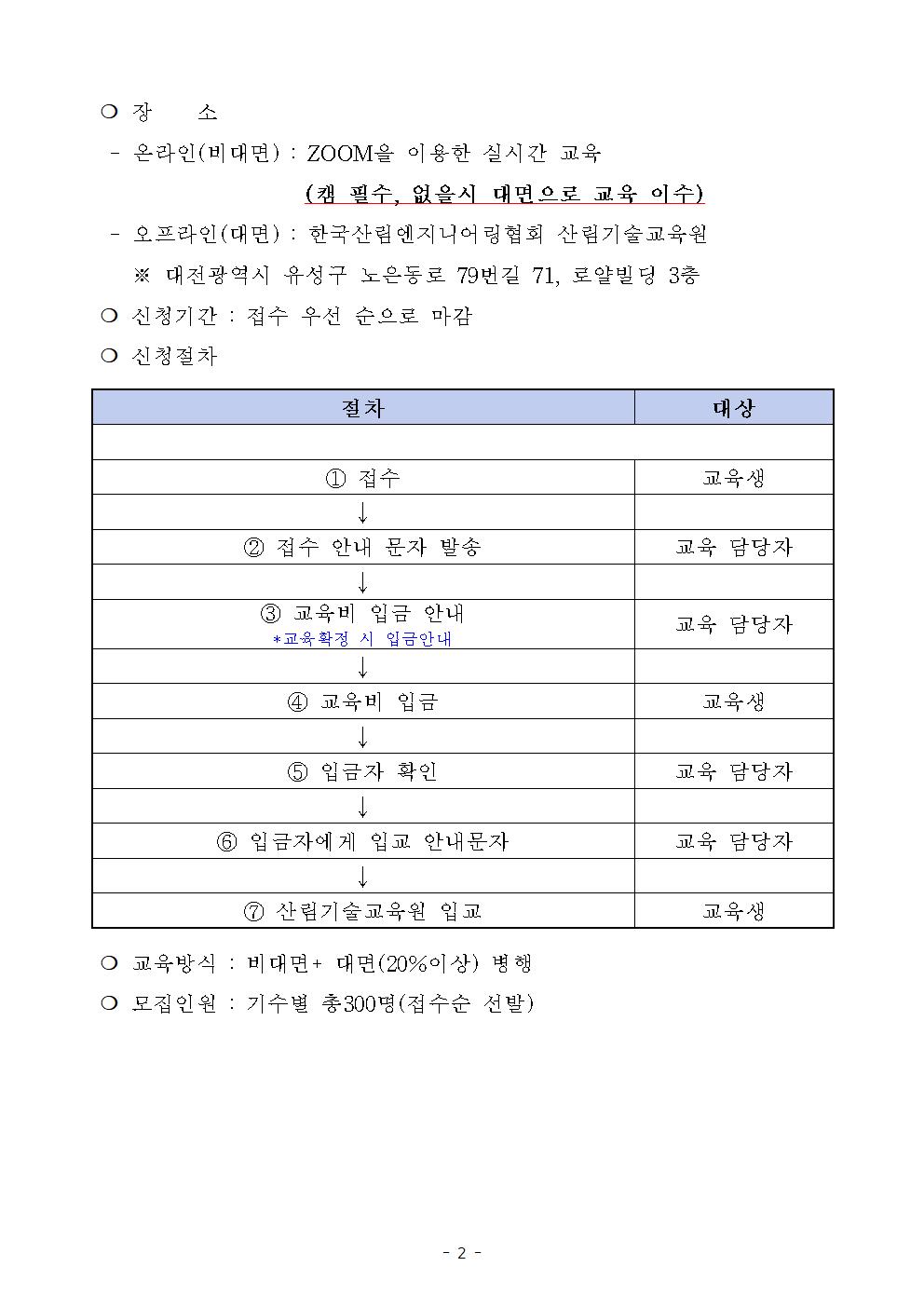 - 입 금 안 내 : (교육원→수강신청자) 교육일정 확정 후, 교육 전 주에 문자안내