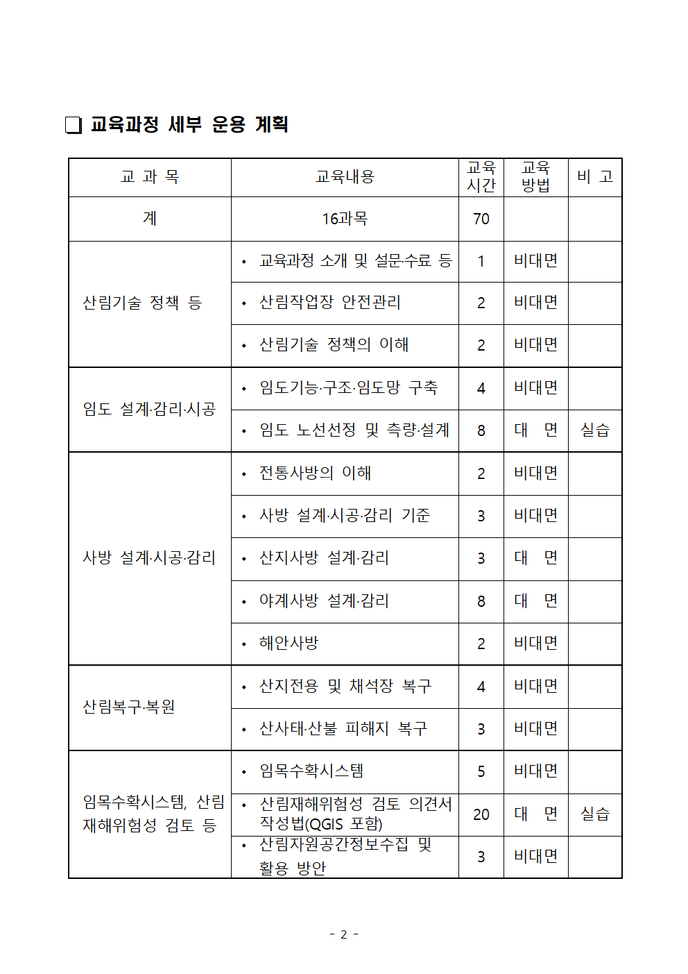 ♦ 교 육 명 : 2024-2 산림공학 기술과정(공학기술자격 취득과정)