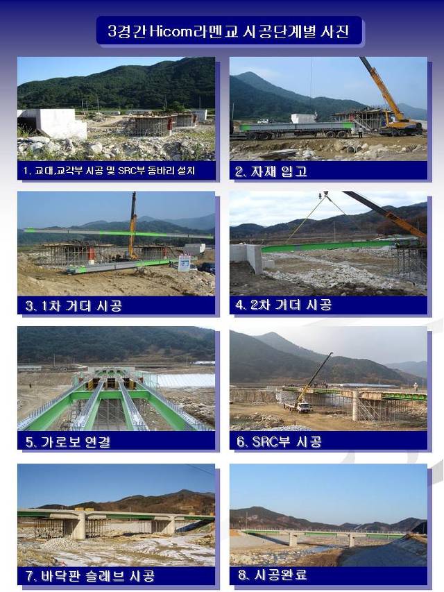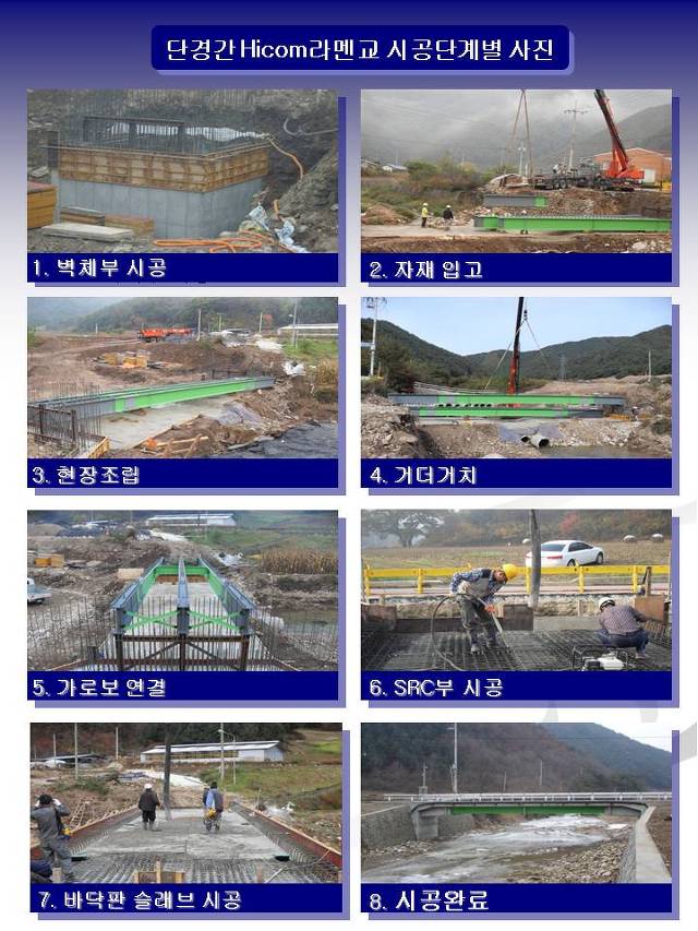 많아 시공성이 불량하나 하이콤 라멘교는 별도의 제작장이 필요없으며 시공성이 아주 양호합니다.