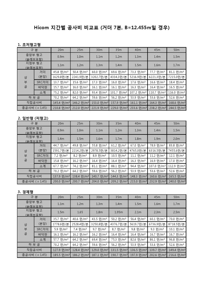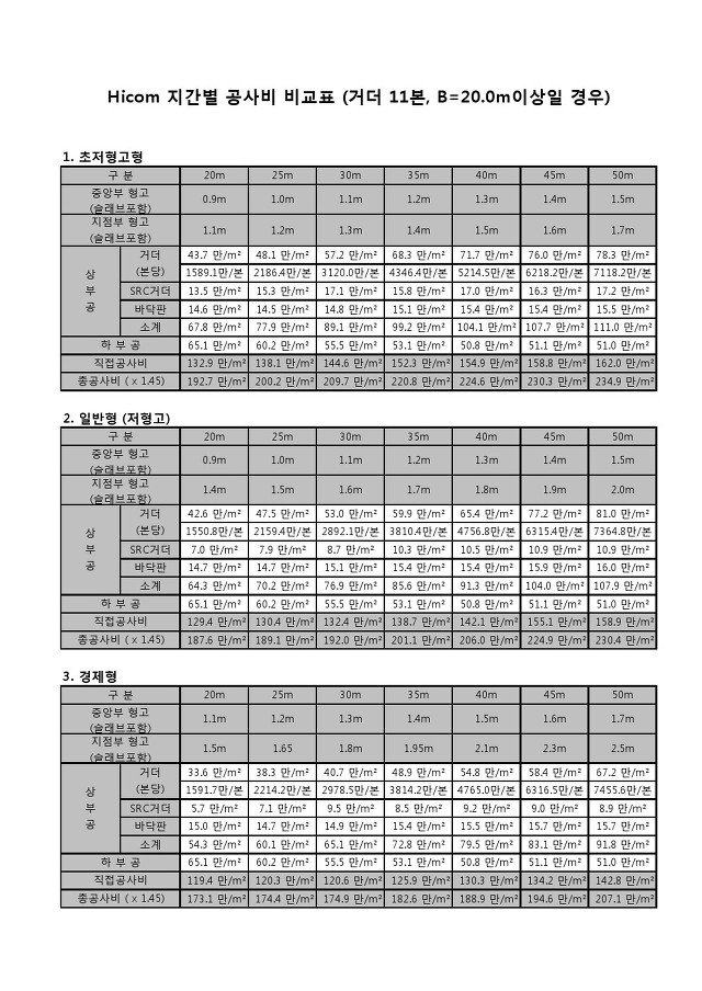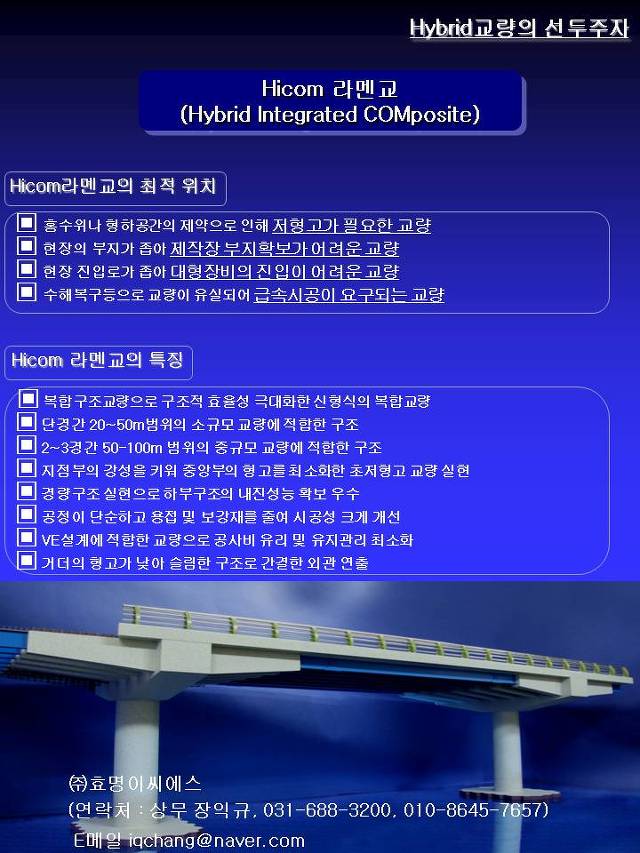 하였습니다. 그 결과 하이콤 라멘교의 거더타입을 초저형고형, 일반형, 경제형으로 구분하게 되었으며, 현장여건에 맞는 교량