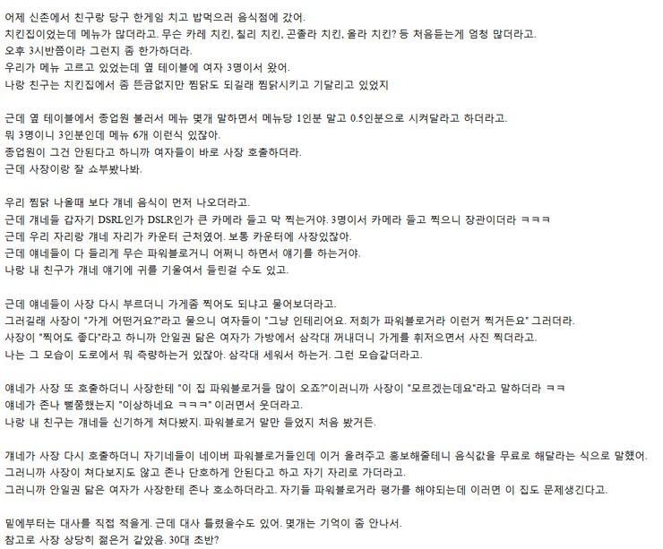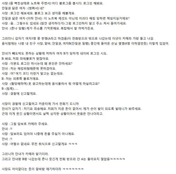 펌) 파워블로거지들.jpg 작성자Bowie|작성시간11.07.13|조회수747 목록 댓글 9 글자크기 작게가 글자크기 크게가 영팝에 개인 사업 하시는 사장님들 계실텐데... 요즘 이런 인간들이 많다고 하니 아래 처럼 대처하시면 좋을거 같습니다. ㅎ 여자가 안일권 닮았으면... 많이 슬프네요. ㅠㅠ 다음검색 현재 게시글 추가 기능 열기 북마크 공유하기 신고 센터로 신고 댓글 댓글 9 댓글쓰기 답글쓰기 댓글 리스트 삭제된 댓글입니다. 답댓글 작성자CHAINSAW | 작성시간 11.07.14 오오 흥미진진하네요ㅋ 작성자인어아저씨 | 작성시간 11.07.14 다양하게 살아 주시네요ㅋㅋ 대단한 파워블러거들 나셨내요 작성자-박솔- | 작성시간 11.07.15 헐 사장님 냉정하게 대처하셨네요. 그나저나 파워블로거지 웃기네요ㅋㅋㅋㅋㅋ 작성자늬소 | 작성시간 11.07.17 ㅎㅎ 노트북 구비 필수 댓글 전체보기