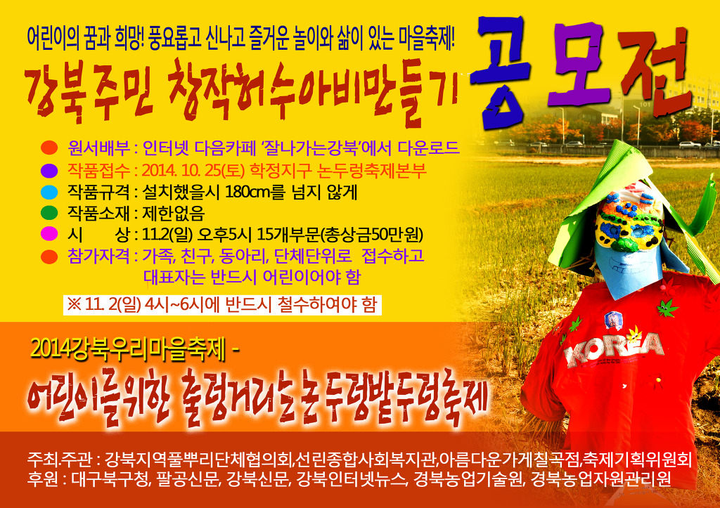 [스크랩] 2014강북주민 창작허수아비만들기 공모전 출품원서 작성자고야|작성시간14.10.14|조회수72 목록 댓글 0 글자크기 작게가 글자크기 크게가 출품원서를 반드시 작성하여 작품접수시 제출하여야 합니다. 2014허수아비공모전_출품원서.hwp 첨부파일첨부된 파일이 2개 있습니다. jpg 파일 공모전포스터 copy.jpg 다운로드 hwp 파일 2014허수아비공모전_출품원서.hwp 다운로드 다음검색 스크랩 원문 : 잘나가는 강북 현재 게시글 추가 기능 열기 북마크 공유하기 신고 센터로 신고 댓글 댓글 0 댓글쓰기 답글쓰기 댓글 리스트