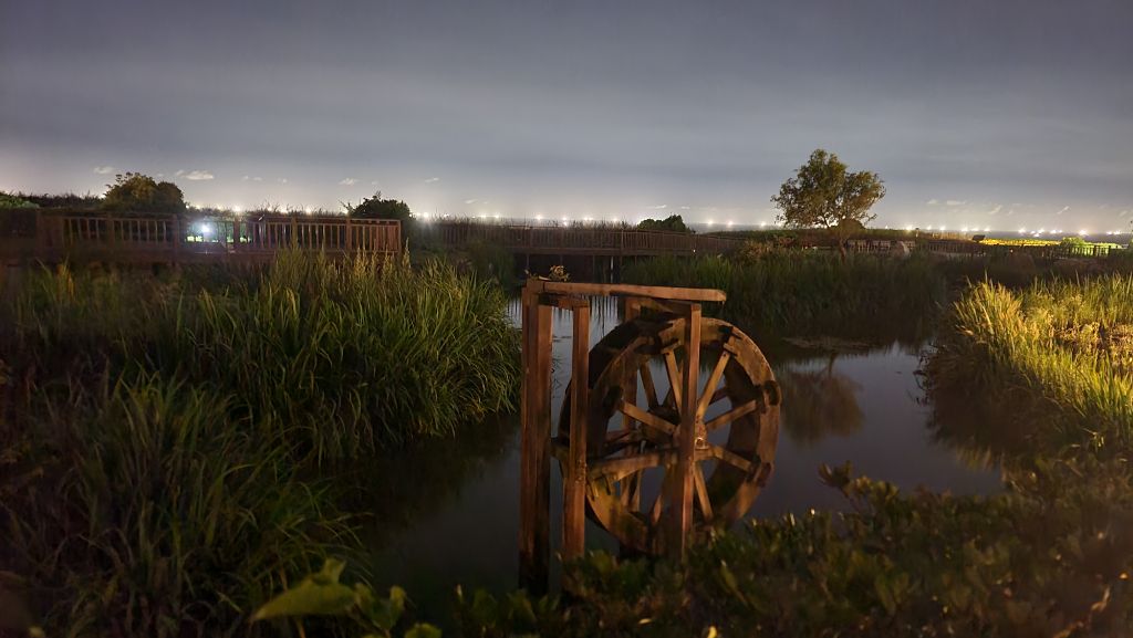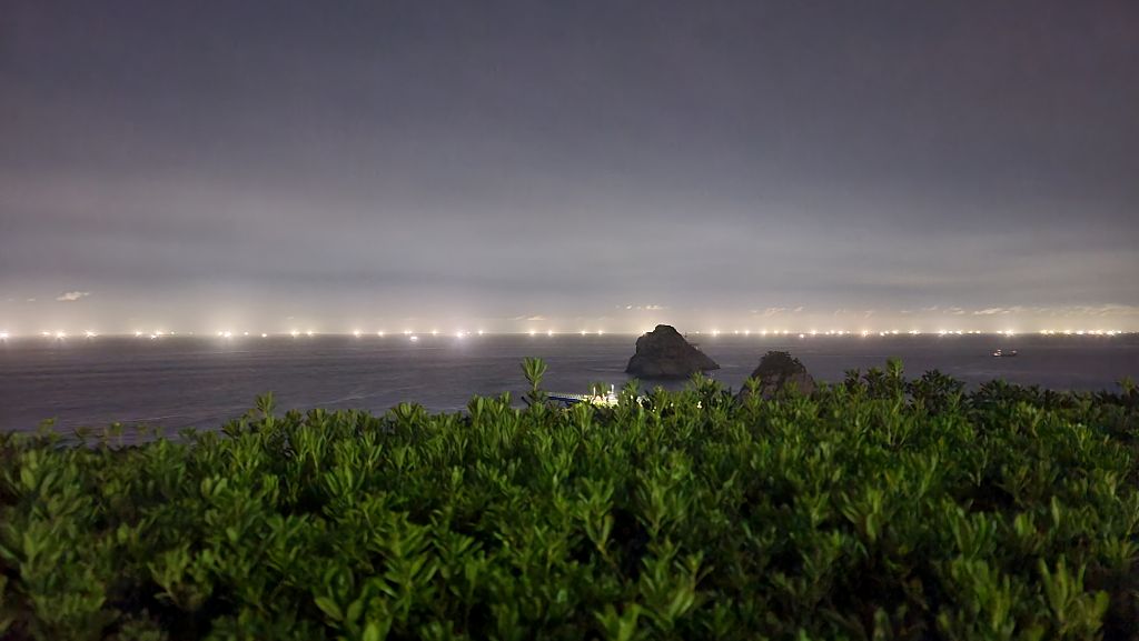 고요한 밤바다에 잔뜩 훤히 불을 밝히고 있다.