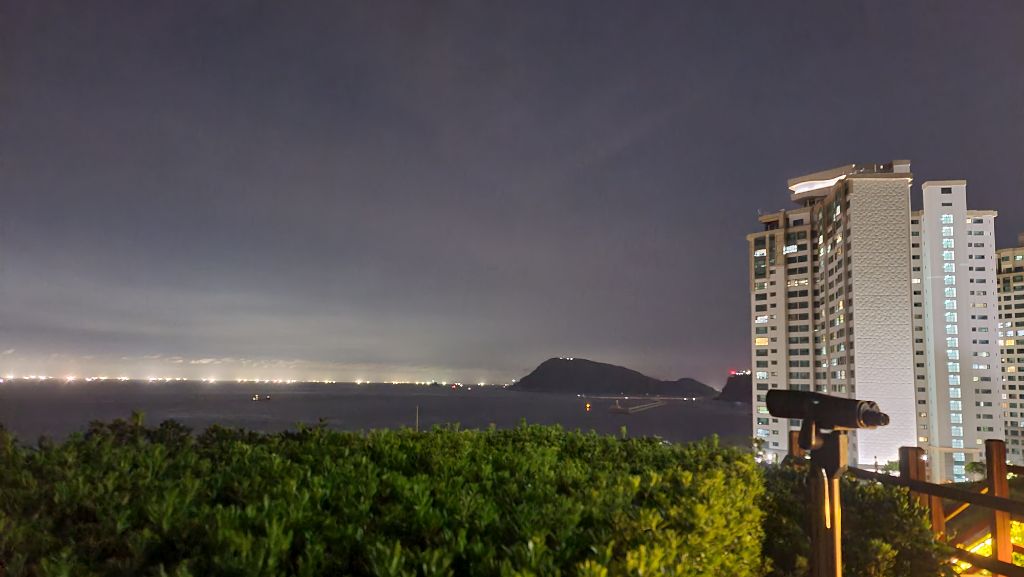 반대편, 이 곳 오륙도 공원의 밤은 평화롭기 그지없다. 오늘따라 라이드족들이 헤드라이트를 화려하게 켜고 오륙도스카이워크에 줄을 지어올라와 거창하게 제 세상인 듯 번쩍거린다.