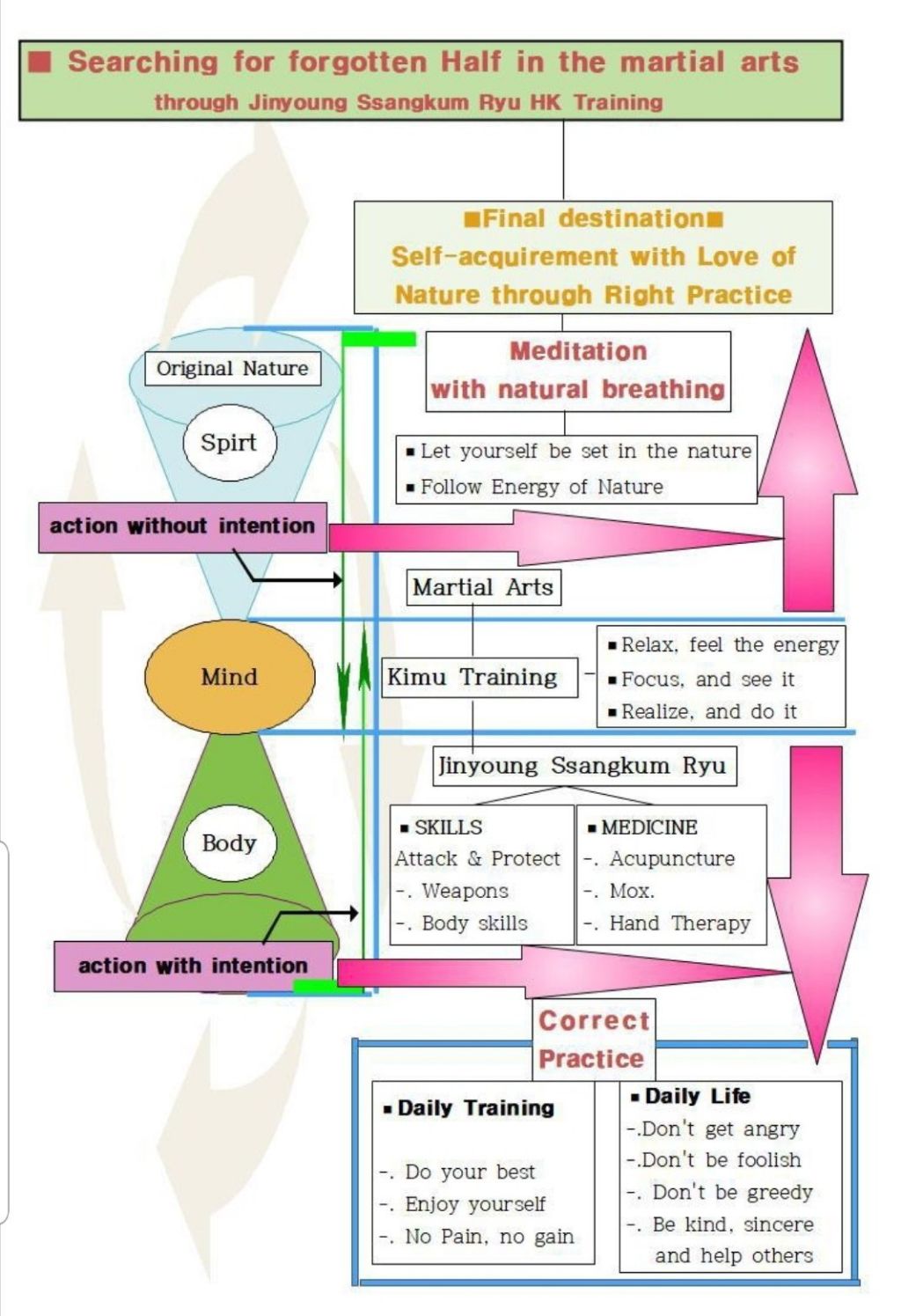Therefore, the creed of Jinyoung Ssangkum Ryu for everyday training is as follows: