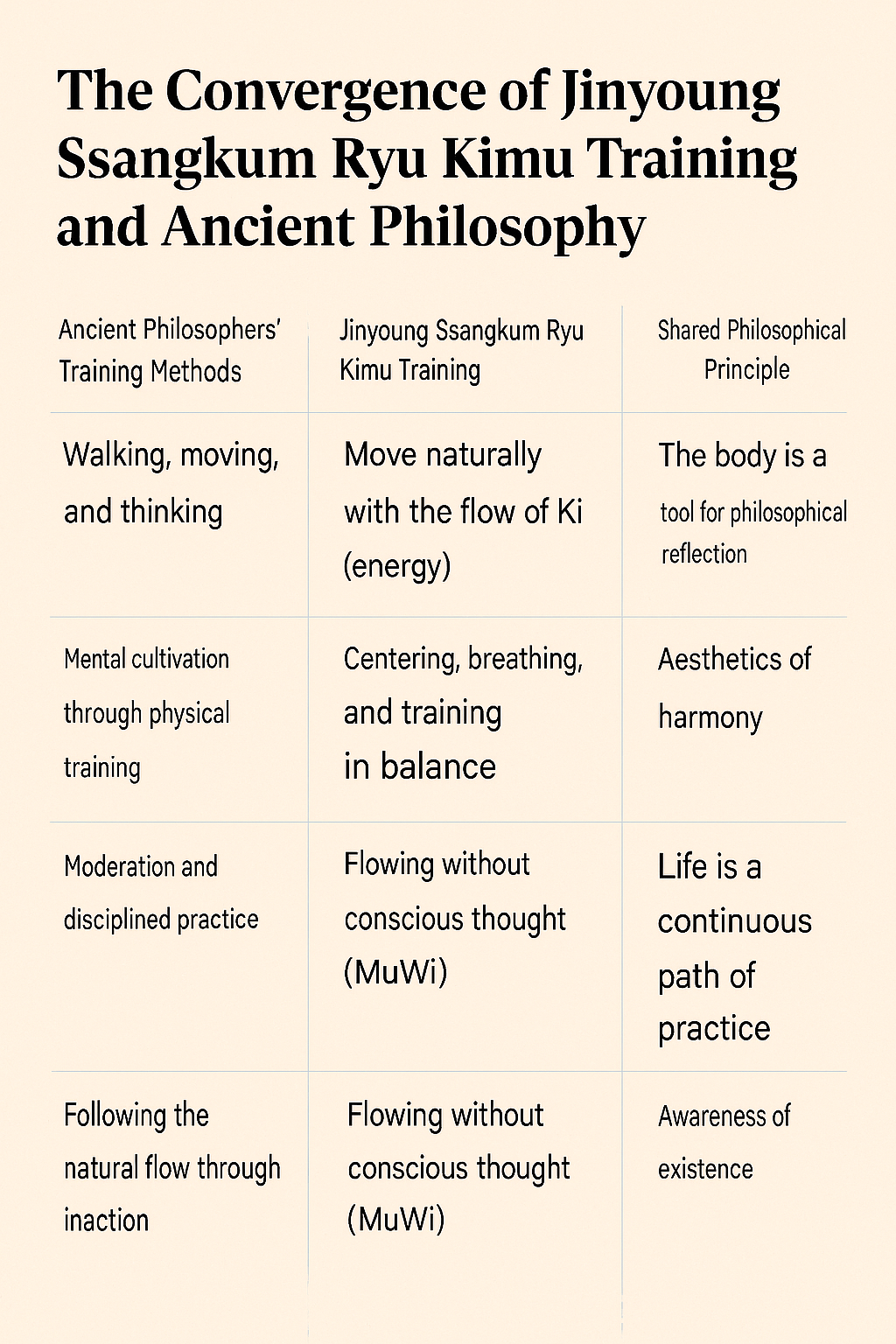 | Ancient | Holistic living experience | Philosophy, medicine, martial arts unified |