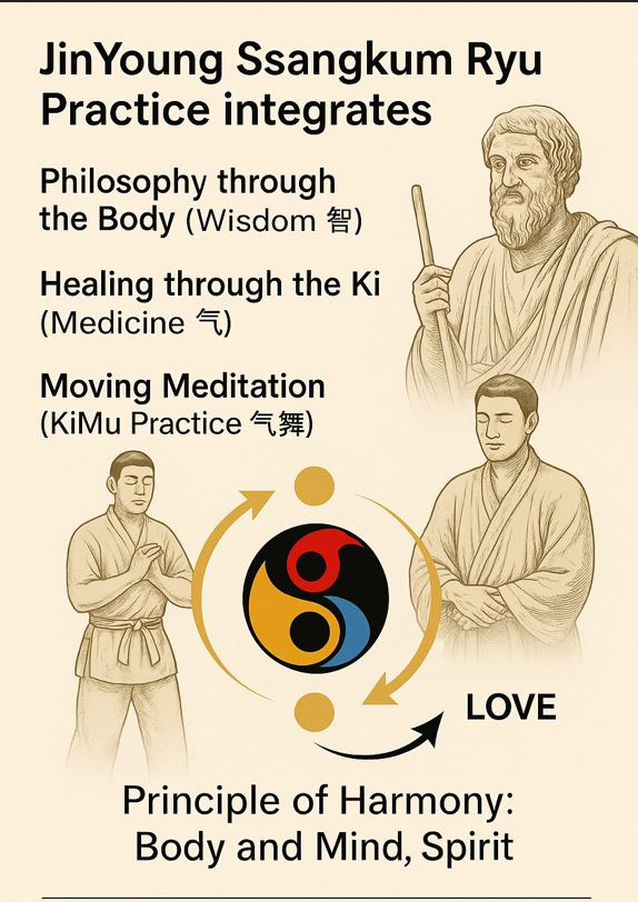 Jinyoung Ssangkum Ryu reconstructs the ancient flow—linking philosophy, healing, and martial practice into a unified path of life and love.