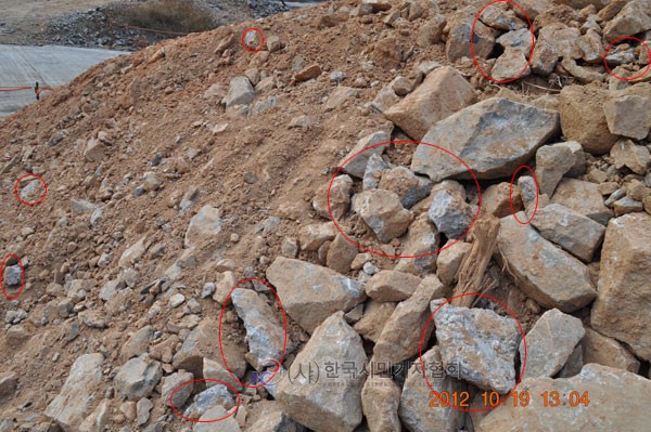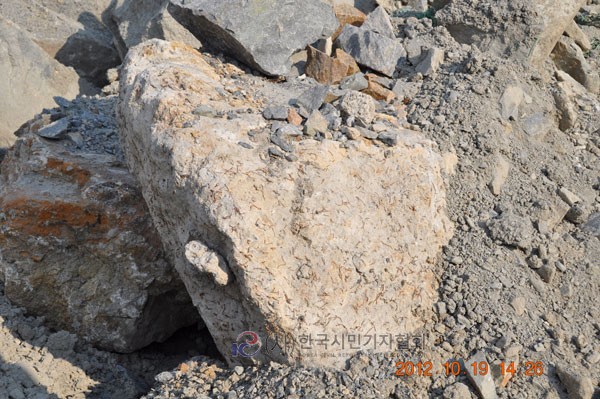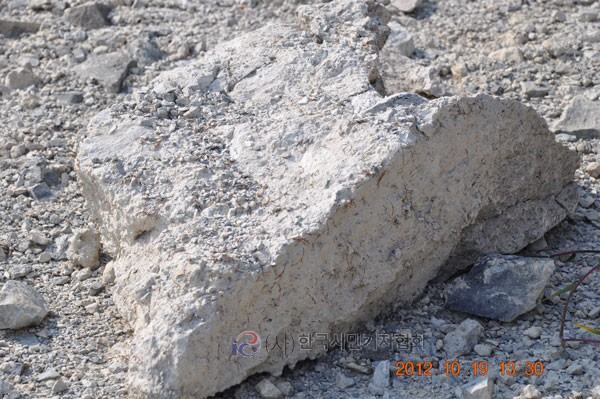 ▲ 천연골재를 생산하는 크랴셔 인근 토사에 섞여 있는 거대한 숏크리트