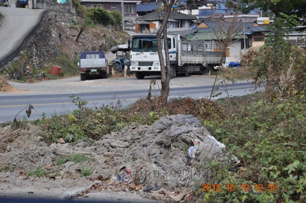 ▲ 진입로 둑방 조성 성토재에 폐콘크리트를 사용했다(원안)
