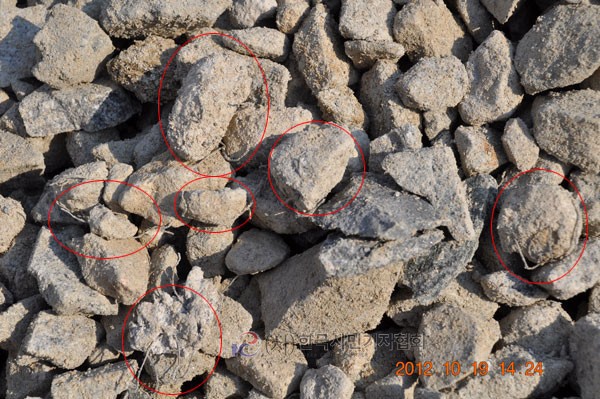만약 본 기자가 숏크리트가 섞인 토석과 숏크리트 버력에 대해 지적하지 않았다면 그대로 성토재 및 천연골재 생산 등에 유용될 성 싶다. 실제로 생산한 천연골재에 숏크리트가 섞여 있다는 것이 이를 방증하고 있지 않은가!