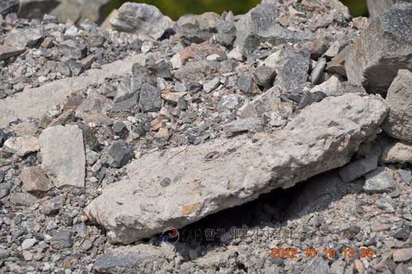 ▲ 토석에 섞여 있는 거대한 숏크리트