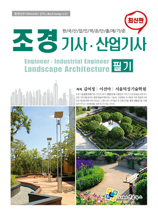 본 교재는 조경기사와 조경산업기사 필기 대비서입니다. 수년간 서울덕성기술학원에서의 강의를 토대로 시험을 준비하는 분들께 좀 더 쉽게, 좀 더 빠르게 이해시킬 수 있는 방법이 뭘까 고민하며 오랜 시간을 지내다 드디어 수험서를 출판하게 되었습니다. 책의 출간을 앞두고 참신한 내용을 담았는지, 내용을 쉽게 이해하실런지 등등의 걱정이 앞서지만, 그 동안의 강의를 바탕으로 전공에 관계없이 조경자격증을 준비하는 분들에게 조경사, 조경계획, 조경설계, 조경식재, 조경관리, 조경시공구조 과목의 이론을 핵심내용을 중심으로 차분히 공부할 수 있도록 구성하였고 또한 기출문제에 세세한 풀이를 수록하여 내용정리만 된다면 혼자서도 풀이가 가능하도록 구성하였습니다.