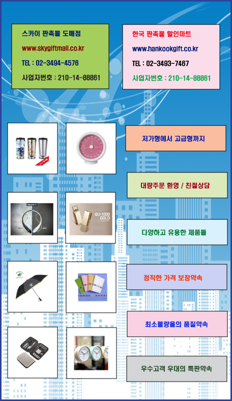 판촉물, 기념품 전문 [스카이 판촉물 도매점]과 [한국 판촉물 할인마트]입니다. 저희는