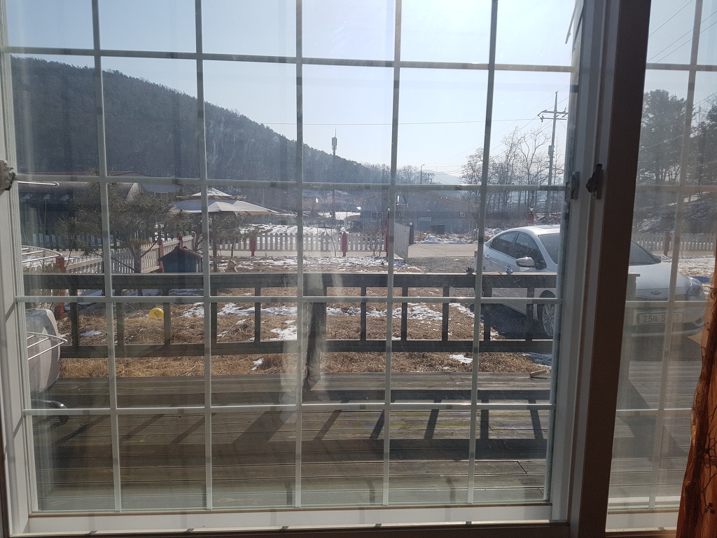 조용한 마을의 전원 주택이며 마당 왼쪽으론 잔디를