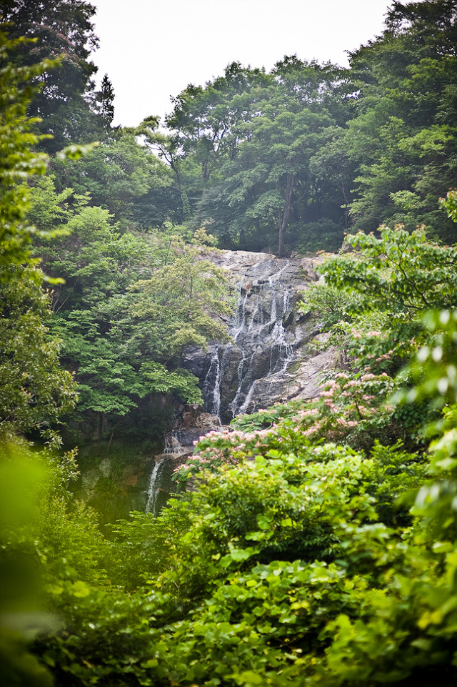 자귀나무 꽃잎으로 수놓은 상사폭포