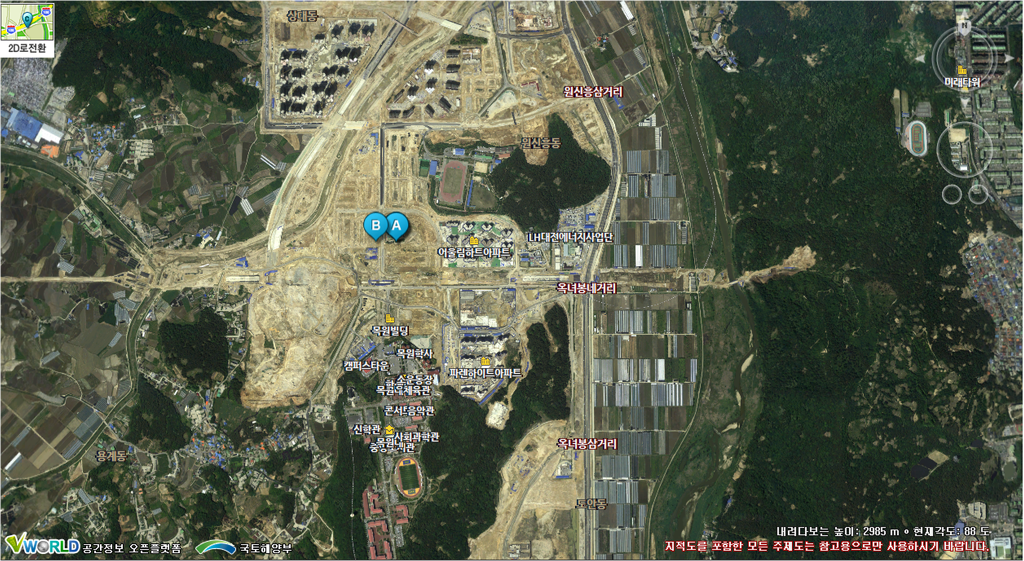 아직 업데이트가 안되서 그런지 현재의 모습과 비교하면... .vworld.kr 도 감짝 놀랄것 같습니다.