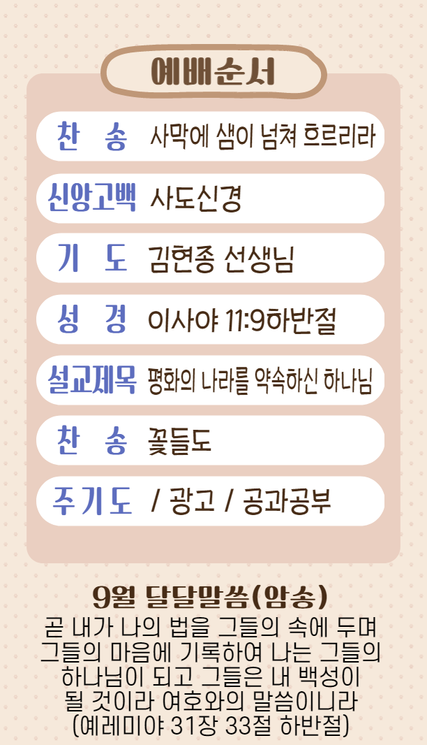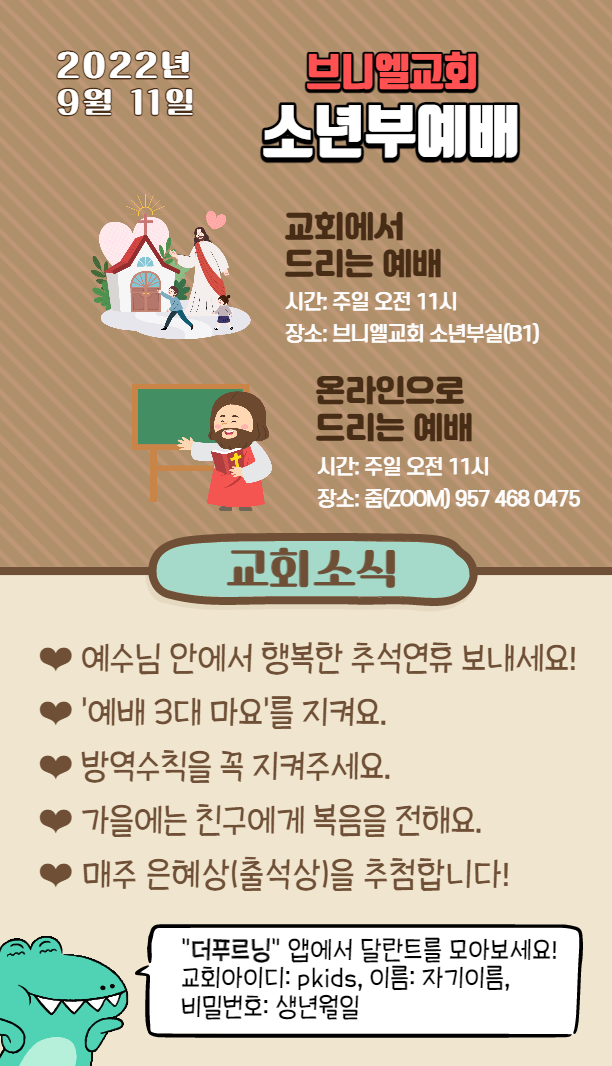 ※ 소년부 예배: 주일 오전 11시, 소년부실(B1)