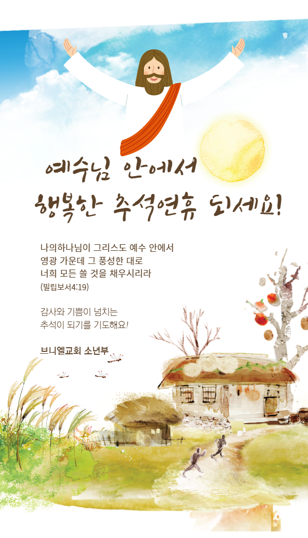예수님 안에서 안전하고 기쁨이 가득한 명절연휴 보내길 바랍니다~
