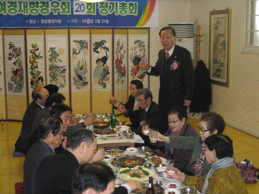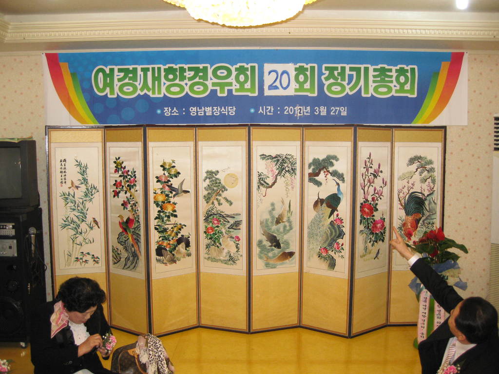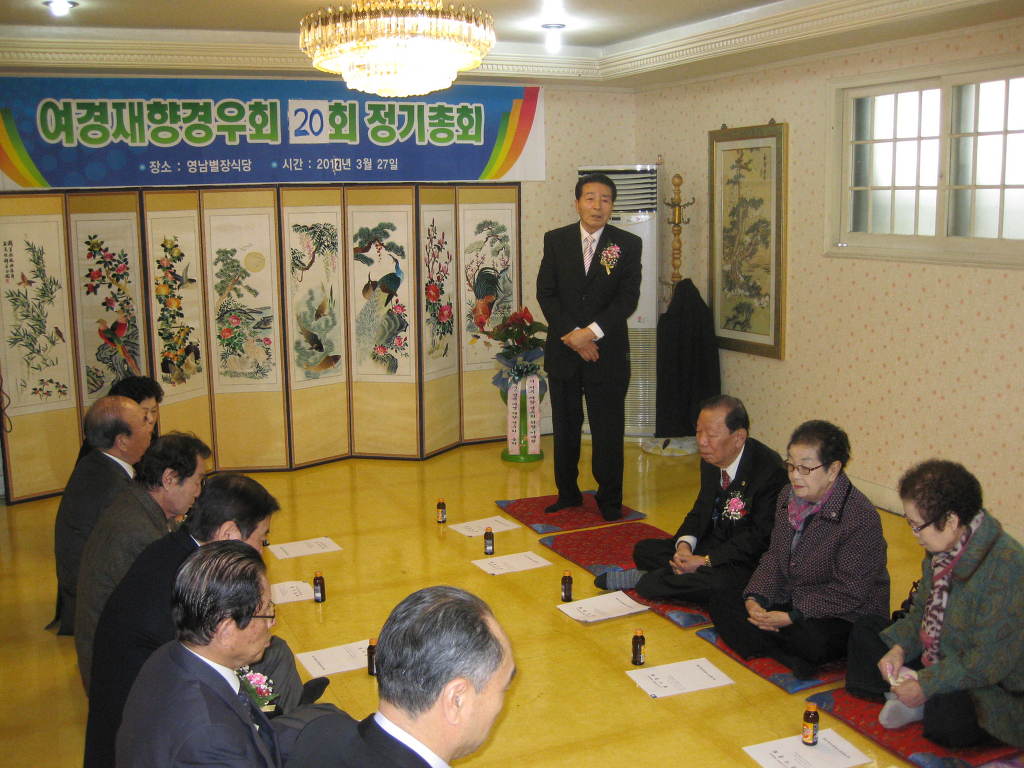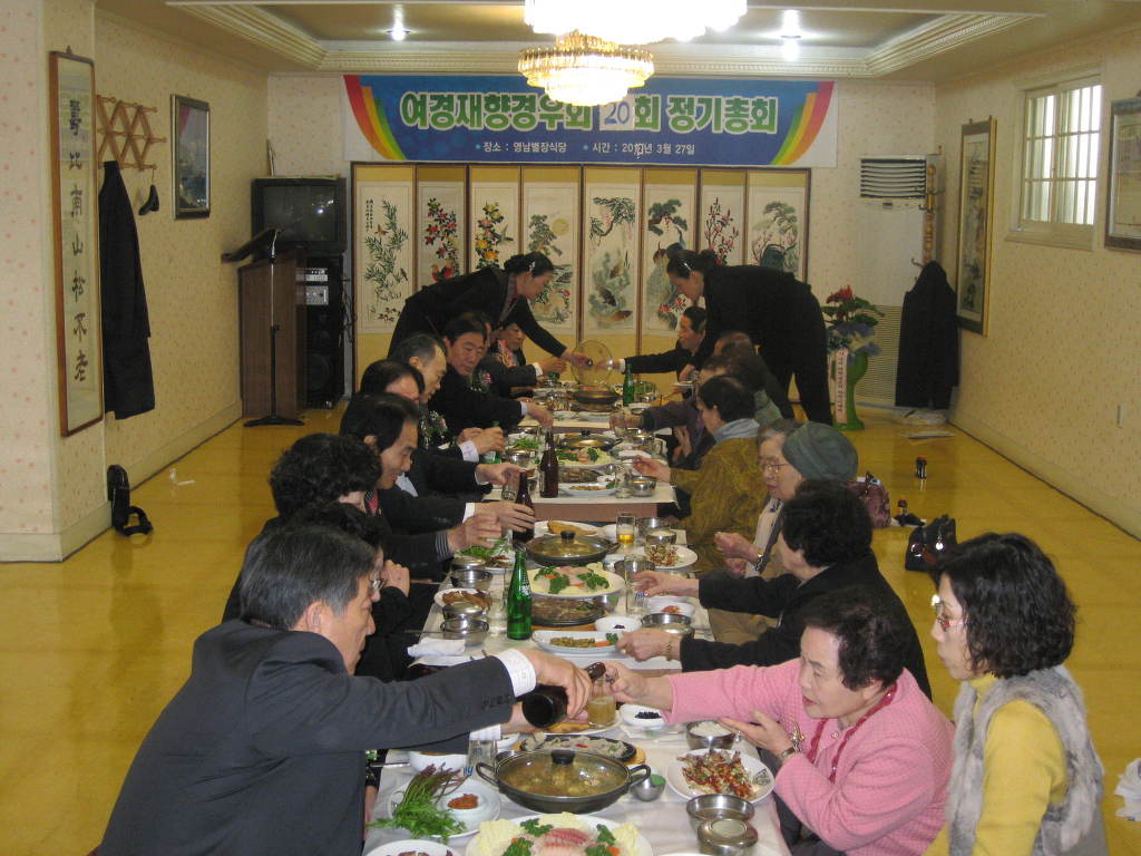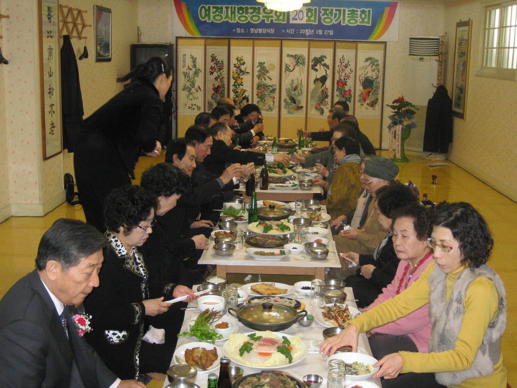대구광역시 재향여경우회 제 20차 정기 총회를 대구시 중구 하서동 소재 "영남 별장" 특별실에서 개최한바 시경우회 회장을 대신하여 사무처장 김영권님, 시경우회 지도위원 이동립님, 김영헌님과 지역회장 동부 주인동,성서 김광조, 북부 한영길, 수성 김무웅, 달서 신동선님, 전 참전회장 변인섭, 사무국장 안희주, 경우산악회 총무국장 백한식님 등과 팔순 고령이신 여경우회 회원님이 참석한 가운데 지난 8 년간 대구시 여경우회를 이끌어 오신 황정남 회장님의 인사 말씀과 정기 총회는 유인물로 대신하며 질의 응답 후 한정식으로 만찬을 하며, 앞으로 여경우회의 발전 방향에 대한 토의가 있었읍니다.