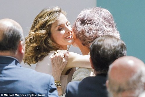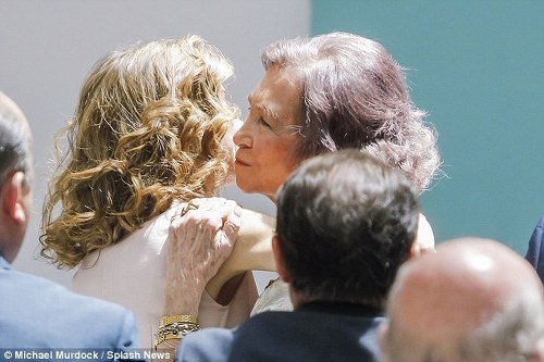 레티시아는 그녀의 시어머니를 무대로 소개해서 행복해보였고 소피아와 껴안았다. 그들은 FAD라는 약물중독 관련 자선단체의 기념비적인 행사를 함께하는 영광을 갖게 되었는데, 이 단체의 회장이 바로 소피아 전 왕비이다.