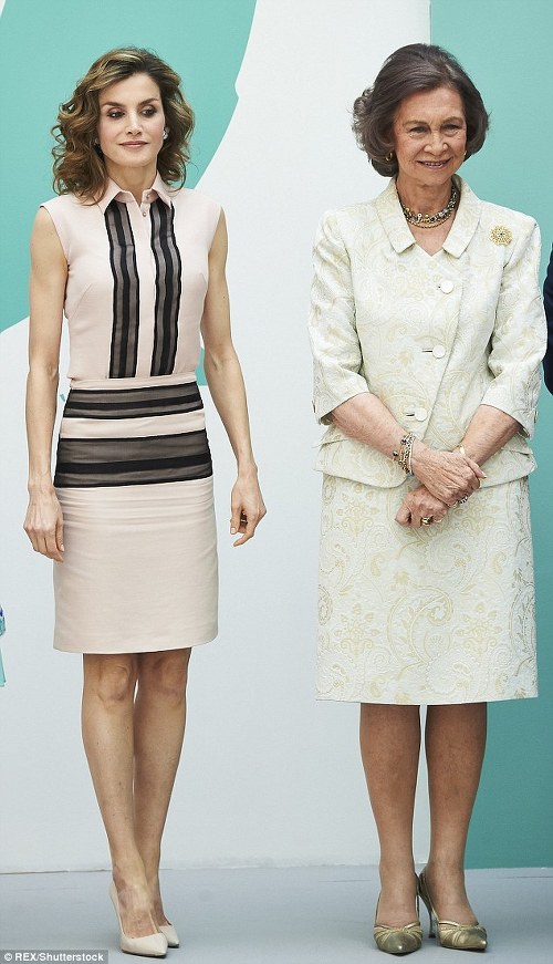 http://www.dailymail.co.uk/femail/article-3654536/Queen-Letizia-Spain-looks-pretty-pink-joins-mother-law-Sofia-stage-Madrid-celebrate-30th-anniversary-drug-addiction-charity.html