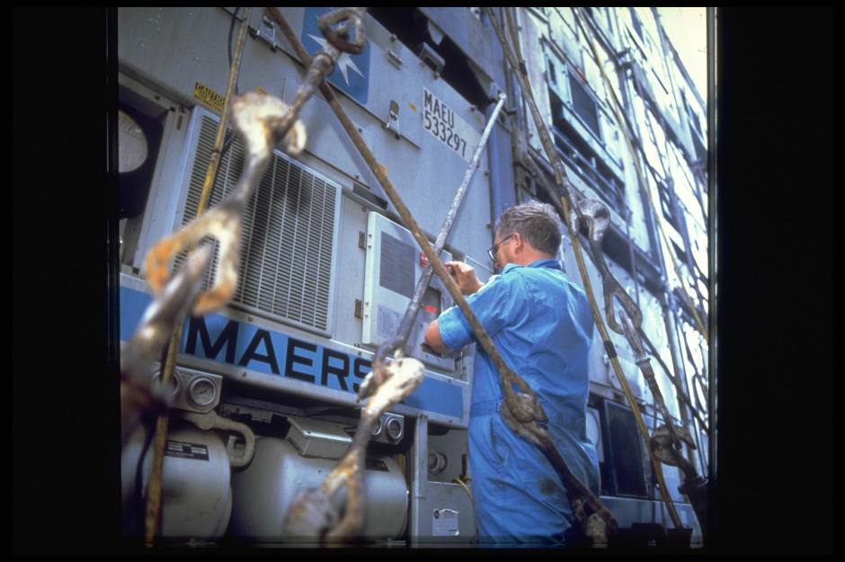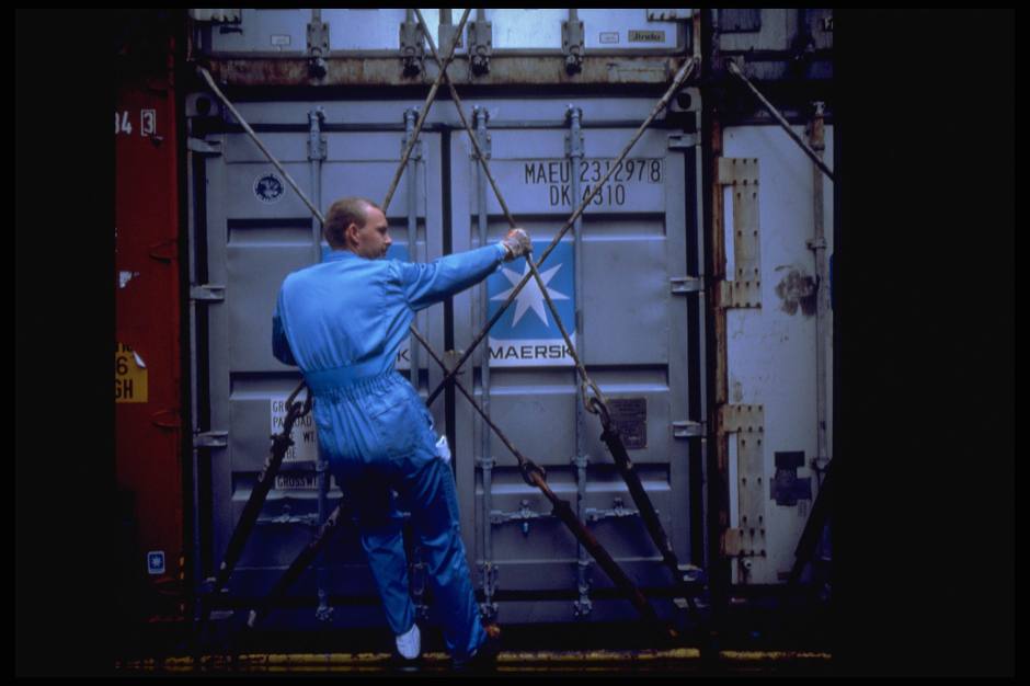 수출컨테이너선에 화물을 고정하기 위한 방법입니다.