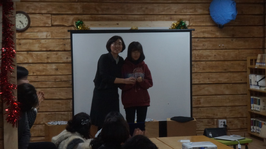 재개관에 그림으로 큰 기여를 한 수인이- 감사패가 매우 쑥스러운 모양이네요.