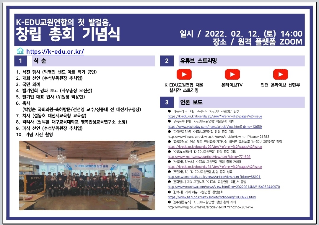 K-EDU교원연합 출범-한국어 교원도 가입 가능함 작성자가을|작성시간22.02.17|조회수47 목록 댓글 0 글자크기 작게가 글자크기 크게가 다음검색 현재 게시글 추가 기능 열기 북마크 공유하기 신고 센터로 신고 댓글 댓글 0 댓글쓰기 답글쓰기 댓글 리스트