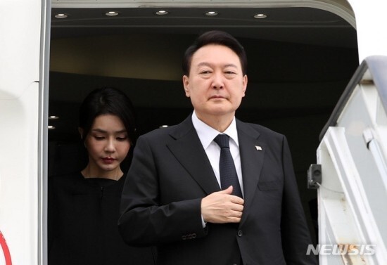 아들과 손자가 대중들 앞에서 프리메이슨 손동작을 보여주고 있다. 런던 공항에 도착한 뒤 이를 어줍지 않게 흉내내는 윤석열의 모습이다.