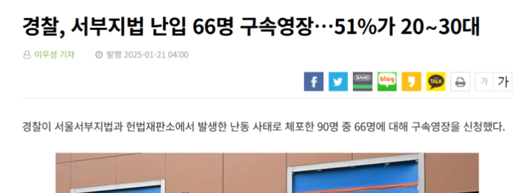 >>경찰, 서부지법 난입 66명 구속영장…51%가 20∼30대