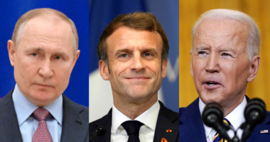 러시아의 우크라이나 침공 직전 미국과 러시아의 회담을 중재하고, 이 와중에 러시아가 우크라이나를 침공하자 푸틴과 설전을 벌이며 맞서는 모습을 보임으로 프랑스뿐 아니라 세계정부를 꿈꾸는 서방세계의 지도자로서의 위상을 굳건히 하고 있다.