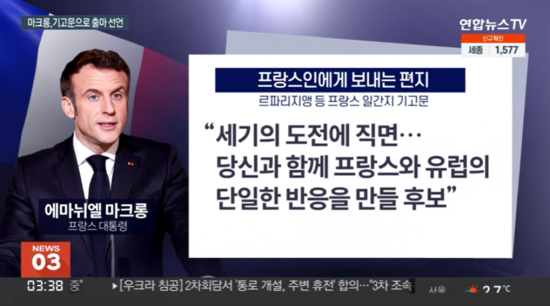 에마뉘엘 마크롱 프랑스 대통령이 기고문을 통해 차기 대통령 선거에 출마하겠다고 선언했습니다.