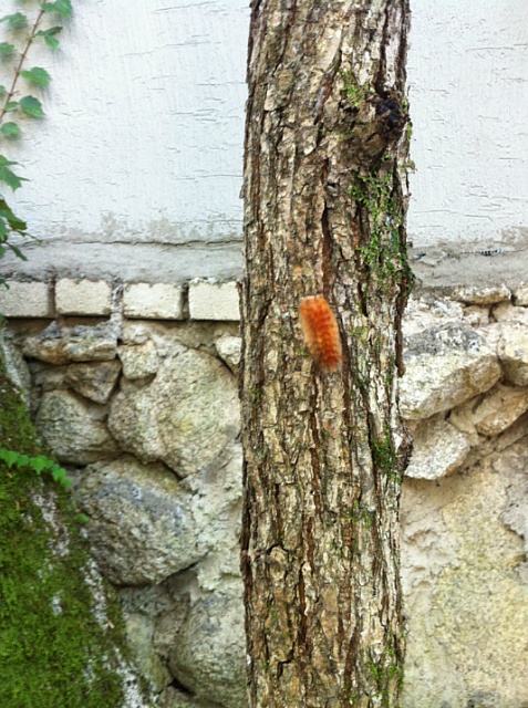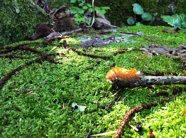 이렇게 갈색털을 가진 송충이 외에도 형광노랑+검은색 아디다스 송충이도 있고요.