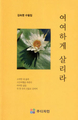김숙영 선생님의 수필집 <여여하게 살리라>상재를 축하드립니다. 작성자원명화|작성시간20.06.30|조회수85 목록 댓글 0 글자크기 작게가 글자크기 크게가 김숙영 선생님의 수필집 <여여하게 살리라>출간을 진심으로 축하드리며 회원 모두의 마음을 담아 건승, 건필을 기원합니다.소박한 내 삶과 시간 여행을 하련다.여여한 삶을 차 한 잔의 선율로 감싸며.... 다음검색 현재 게시글 추가 기능 열기 북마크 공유하기 신고 센터로 신고 댓글 댓글 0 댓글쓰기 답글쓰기 댓글 리스트