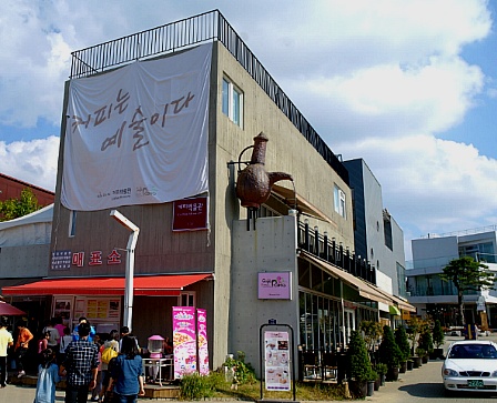 헤이리 커피 박물관에 도착하고 보니 ‘커피는 예술이다’라는 현수막이 있고 그 옆에 커다란 커피 보드 조형물이 운치를 더해 주고 있다.