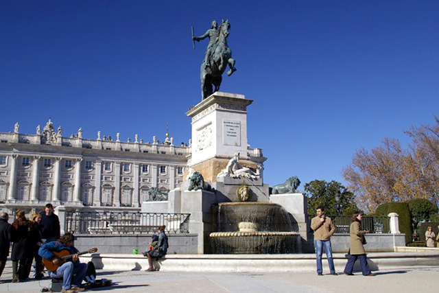 펠리페 5세때 지어진 이 왕궁 앞에는 선왕 펠리페 4세의 동상이 서 있다.