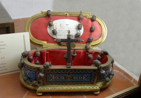 테레사 성녀의 도토리 묵주와 그녀가 품에 안은 채 숨을 거둔 십자가, 그리고