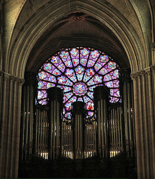 1220년부터 1225년에 걸쳐 완성 된 직경 9.6m로, 밖에서 장미창을 바라보면