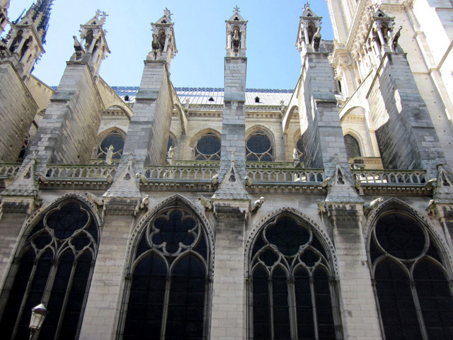 노트르담 대성당은 최초로 '플라잉 버트레스(Flying Buttress)'공법을 사용한 건물이며,