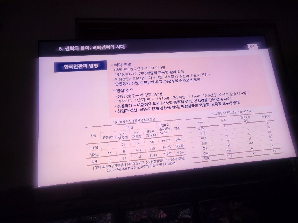 “윌리엄스와 이묘묵 같은 문고리 권력들은 미군정이 듣고 싶어 하는 얘기만 해줌으로써, 작은 실수와 큰 실수 사이에서 그것을 큰 실수로 몰아가는 데 중요한 역할을 했어요. 사실 해방직후 공간이 그렇게까지 어긋나서 엉망진창 되지 않을 수도 있었습니다. 가령 지방에서는 인공이나 인민위원회에 대해 우호적인 곳들이 꽤 있었어요. 전남 같은 곳에서는 행정이나 치안도 잘 유지되고 민심도 좋았어요. 그런데 어느 날 갑자기 하지가 인공 부정 성명을 낸 뒤로 분위기가 싹 바뀌어서 경찰이 폭력 진압을 시작한 거죠. 틈이 갈라지는 순간엔 각도가 미묘했지만,