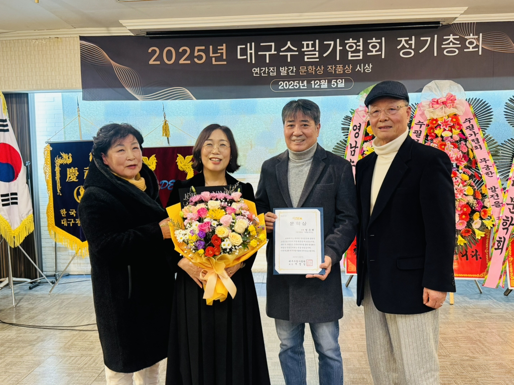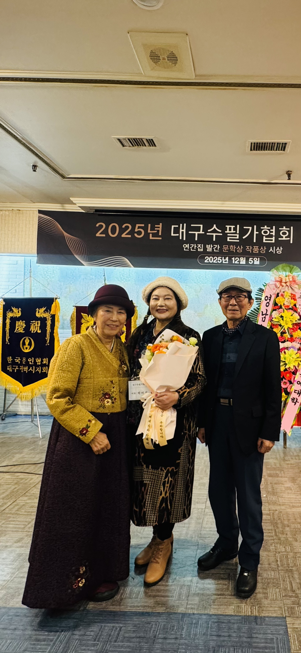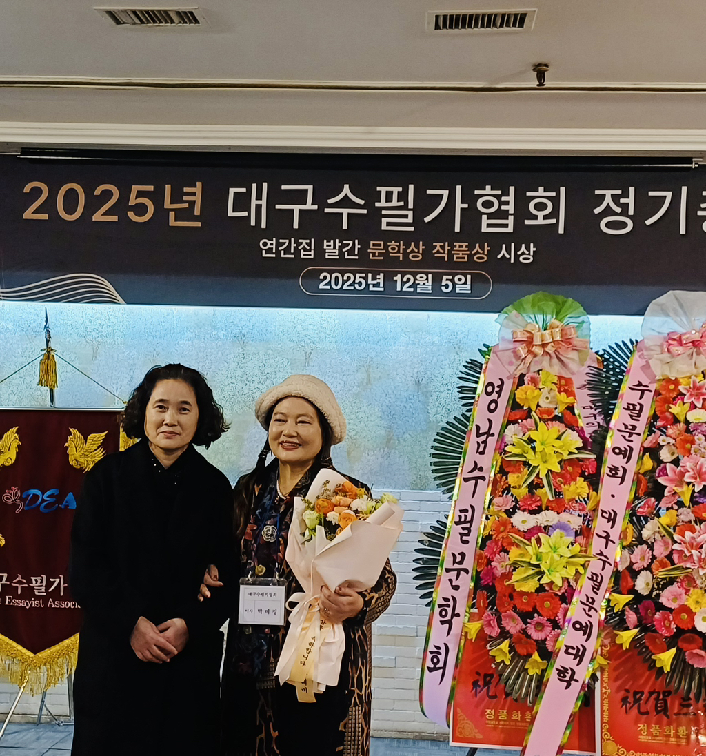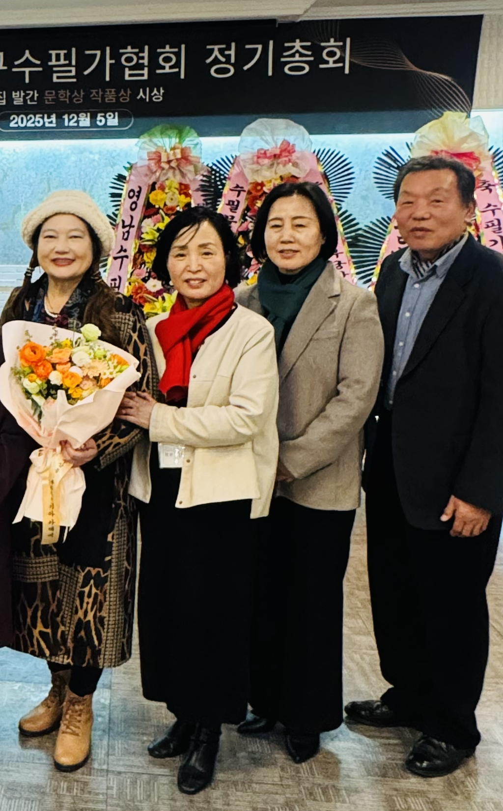 2025년 총회 및 연간집 출판기념회 작성자박미정|작성시간25.12.06|조회수95 목록 댓글 2 글자크기 작게가 글자크기 크게가 다음검색 현재 게시글 추가 기능 열기 북마크 신고 센터로 신고 댓글 댓글 2 댓글쓰기 답글쓰기 댓글 리스트 작성자裕堂(유당) 이정경 | 작성시간 25.12.06 미정 선생님 사진 감사합니다. 수고 많으셨습니다,_()_ 작성자엄옥례 | 작성시간 25.12.07 선생님,작품상 수상을 축하드립니다!사진도 고맙습니다. 댓글 전체보기