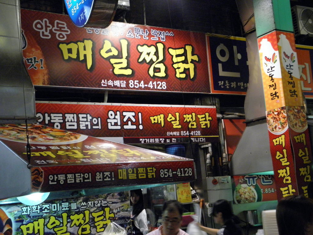 요즘은 안동 구시장 안동찜닭과 시장 밖 안동찜닭이 약간 달라 시장 밖 음식을 선호하는 편이다. 시장 안에는 이상하게 손님 대접을 못 받는 기분이 들고 위생적인 문제도 좀 있고 가장 중요한 것은 간이 세다는 것이다. 찐한 맛을 동반하기에 매우 자극적이다. 그래서 젊은 사람들에겐 인기가 있을지 모르겠다. 밖의 안동 찜닭은 심심한 맛을 느끼면서 풍미가 있다.