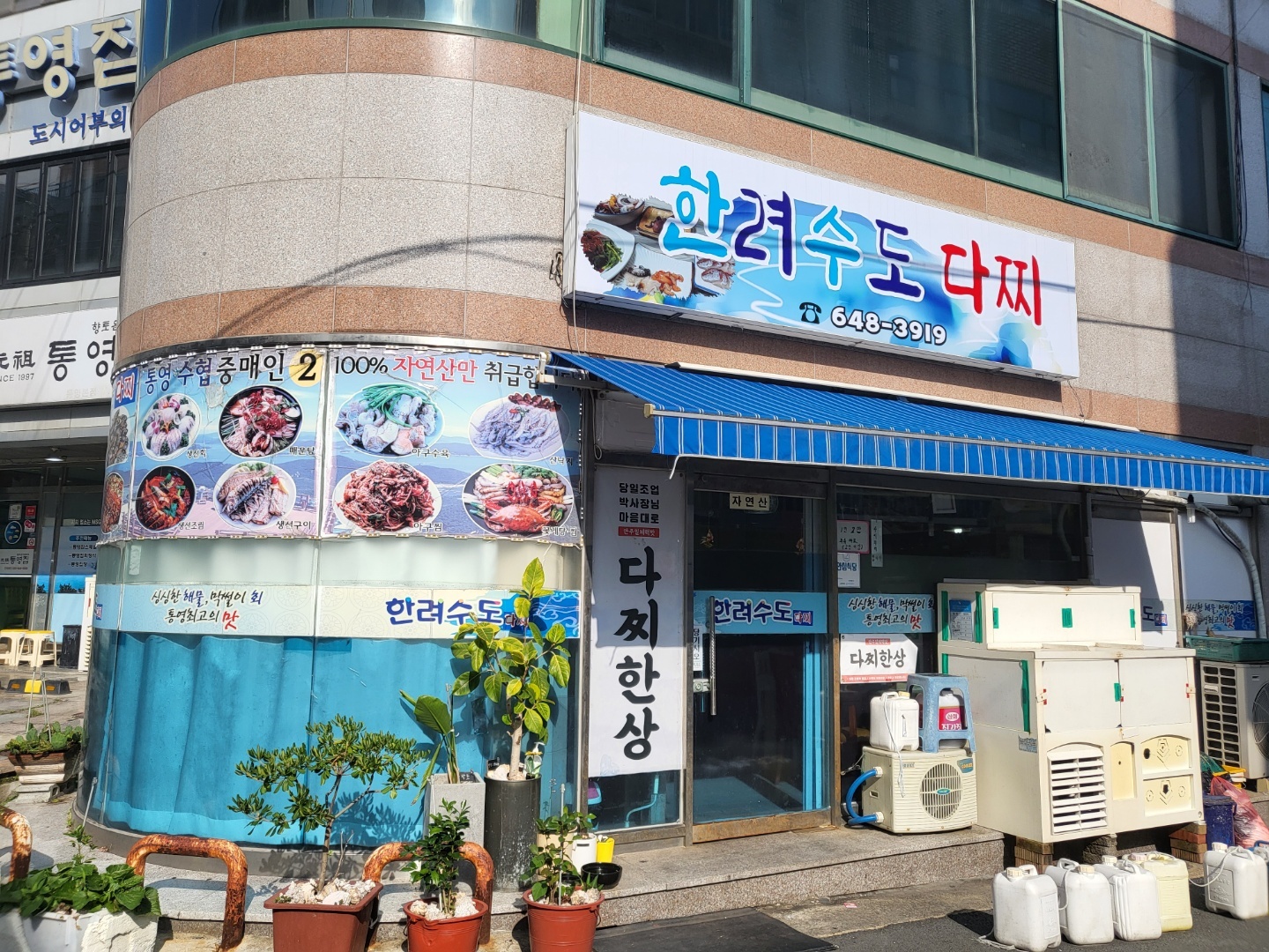 일단 맛집으로 소개된 해녀해물다찌집을 소개한다. 인터넷이 맛집을 바꿔 놓는다고 하더니만 술 마시러 오는 사람들보다 맛집 찾아 다니는 젊은 친구들이 많다. 일단 결론은 술 마시는 다찌가 아니라 보여주기식 다찌이기에 여기서 맛을 찾는다는 것은 불가능하다고 보면 된다. 통영이 고향인 친구들도 지금 다찌는 진짜 다찌가 아니라고 한다. 역시 충무가 고향인 김상립 선생님도 고개를 흔든다. 그냥 눈으로 즐기는 관광코스로 여기면 실망을 덜 할것 같다.