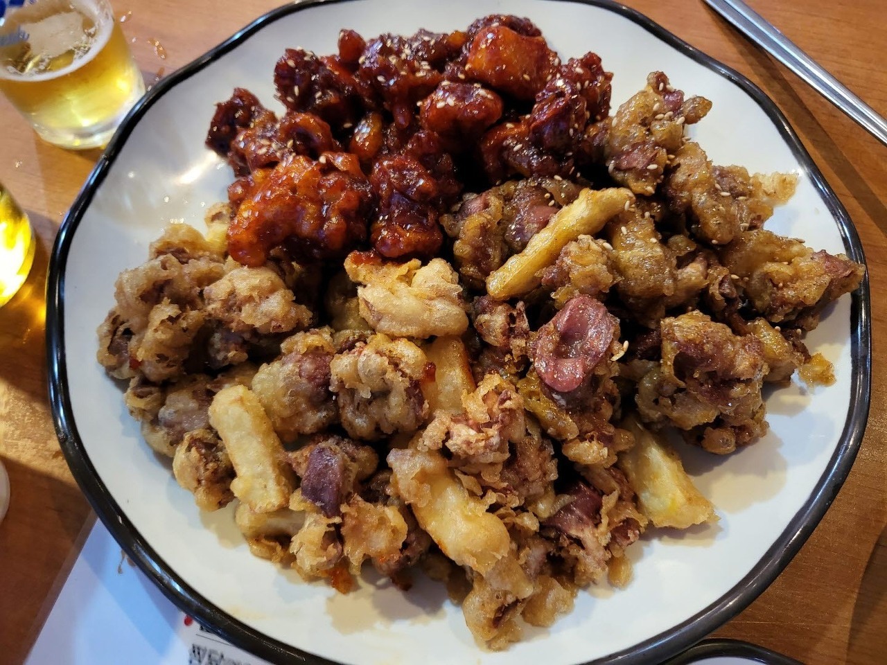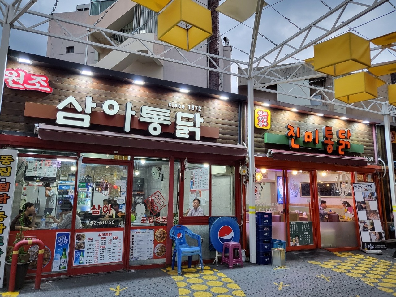 평화시장 닭똥집은 내가 원하는 닭똥집은 아니다 난 튀긴 것보다는 볶은 것을 더 좋아한다. 그 옛날 포장마차에서 판 닭똥집이 입에 익었기 때문이리라. 동대구역이 생기면서 평화시장에 이두명·나춘선 부부가 1972년 '삼아통닭' 자리에서 도계업시작한 것이 시초였다. 당시 매일 아침 인력시장이 섰고 일자리를 선택받지 못한 사람은 시장에서 낙심한 마음을 막걸리로 달했기에 버리기 아까운 닭똥집을 밀가루를 바르지 않고 그냥 튀겨서 안주로 했다. 이것이 닭똥집 골목의 시초였다. 튀긴 닭똥집을 즐기는 분들은 이쪽으로 가면 좋다. 맥주 안주로는 튀긴 것 만큼 좋은 것이 없으니깐. 똥집은 단 세가지이다. 그냥 튀김똥집, 간장튀김똥집, 양념 튀김똥집 |