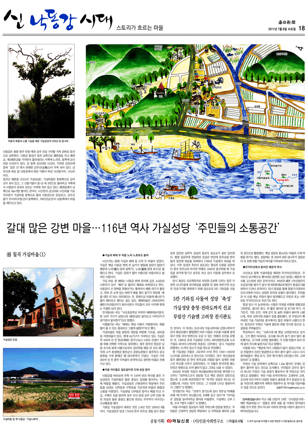 역사를 자랑하는 가실성당과 가실마을이 매일신문에 게재 샘들에게 안부 전합니다