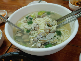 김이 무럭무럭 피는 칼국수는 본게임이다. 채친 호박과 파, 잘게 부순 김 등 고명이 핀 꽃밭은 눈을 호강시킨다. 국물 한 숟갈에 방금 먹은 보리밥이 쓰르륵 내려가는 듯하다. 칼칼하게 비벼먹은 보리밥에 부드러운 면발은 특별나지 않은 사람들의 감춰둔 매력 같다. 종류도 다양해서 닭 칼국수, 팥 칼국수, 바지락 칼국수, 장칼국수, 김치칼국수 등 덧붙이는 재료에 따라 이름과 맛을 달리하는 칼국수. 그러나 최소한의 양념으로, 본래의 국수 맛을 잃지 않는 비법이 중요하다. 눈 내리는 창밖의 풍경과 잘 어울리는 따뜻한 한 끼다.