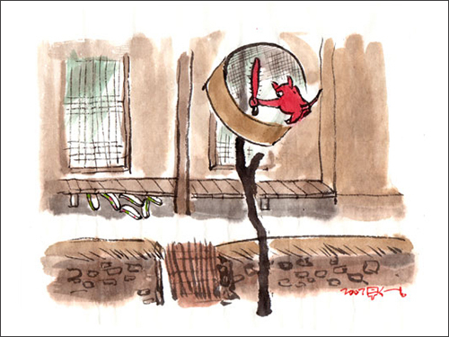 ▲ 섣달그믐 세시풍속, '양괭이귀신 물리치기' (그림 이무성 작가)