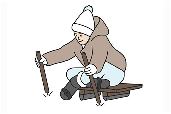 나무막대에 널빤지를 덧댄 조악한 썰매를 타고 놀았던 짜릿함