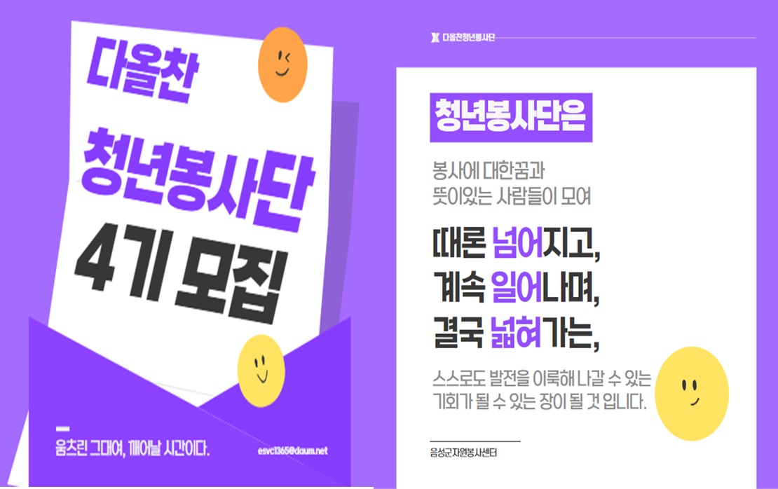 ▶ 신청방법 : 음성군자원봉사센터 043-873-4358