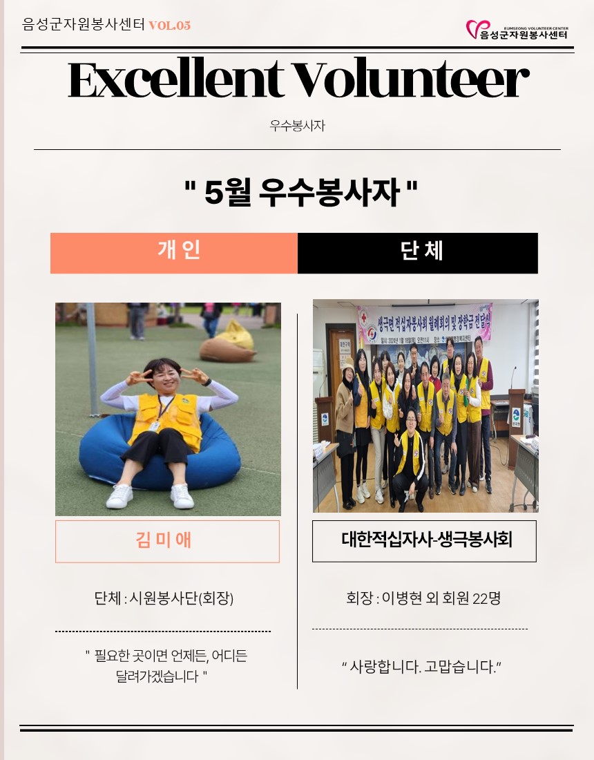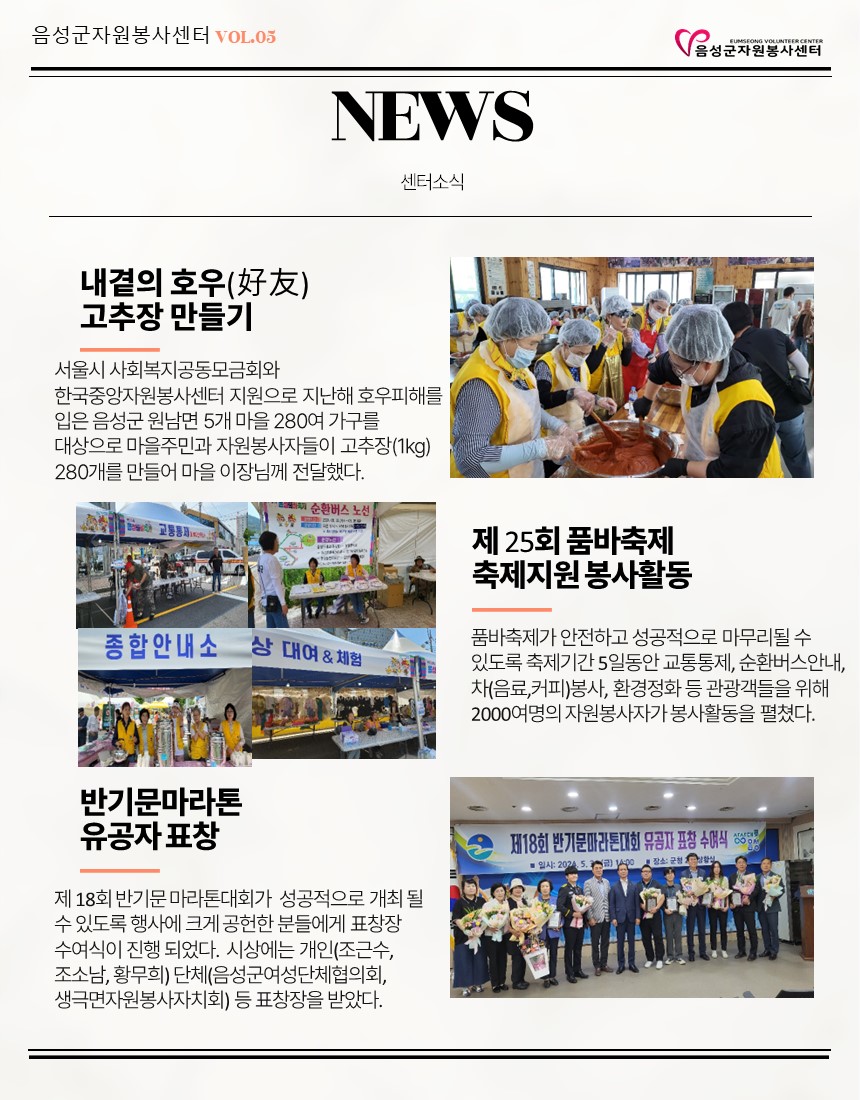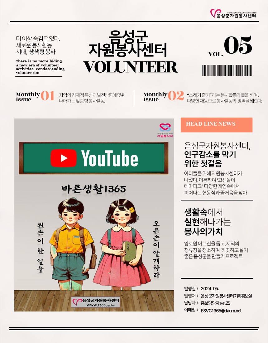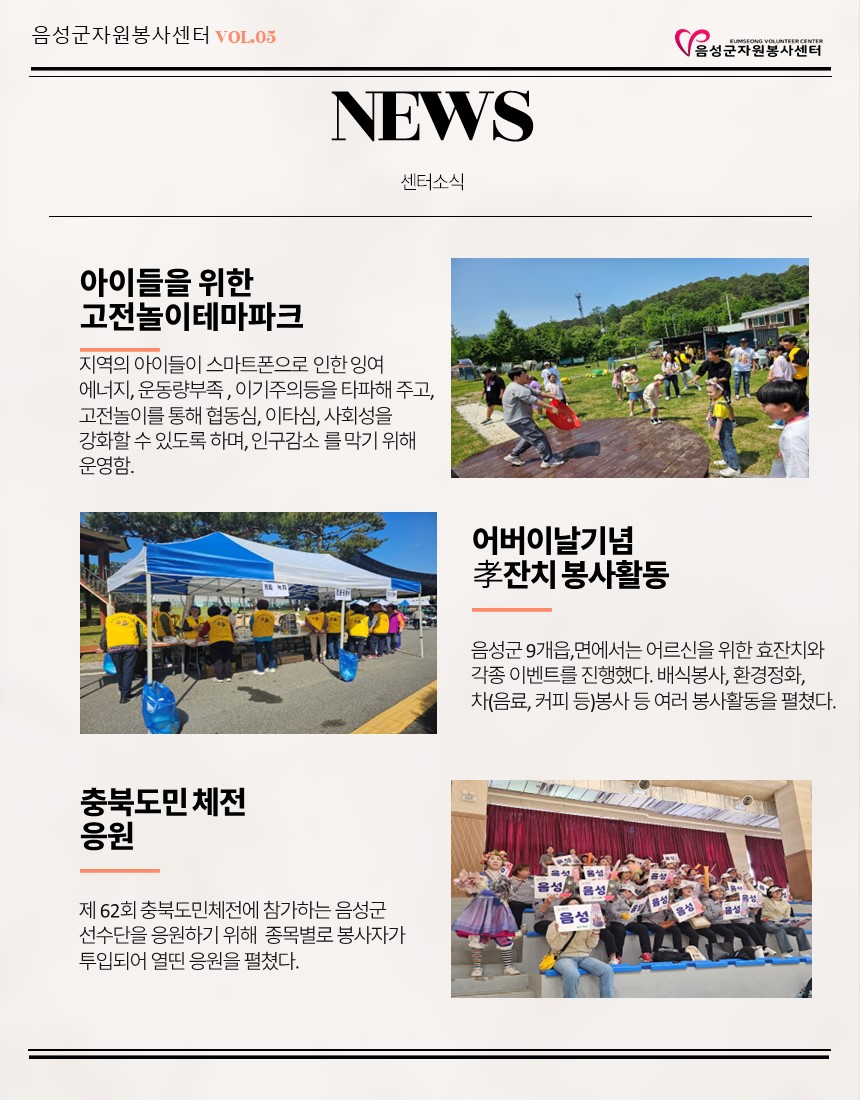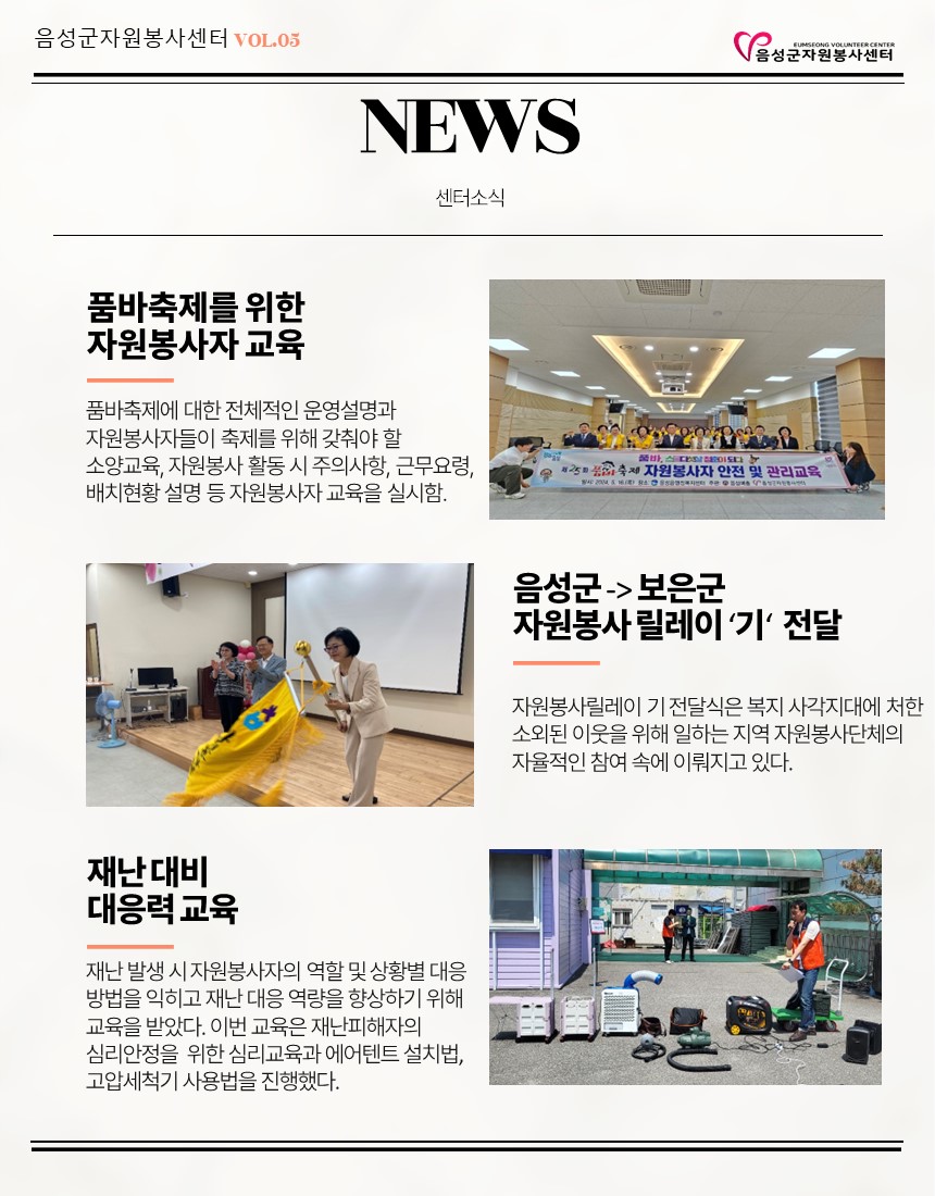 2024년 5월 웹진입니다. 작성자음성군자원봉사센터|작성시간24.06.24|조회수43 목록 댓글 0 글자크기 작게가 글자크기 크게가 다음검색 현재 게시글 추가 기능 열기 북마크 공유하기 신고 센터로 신고 댓글 댓글 0 댓글쓰기 답글쓰기 댓글 리스트
